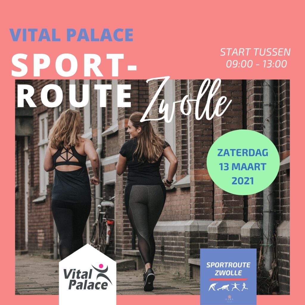 Aankomende zaterdag 13 maart 2021 organiseert Kara Yoga samen met Vital Palace een leuke sportroute door Zwolle. Deze route door de binnenstad van Zwolle is 5 km lang en onderweg kun je op verschillende punten oefeningen doen.